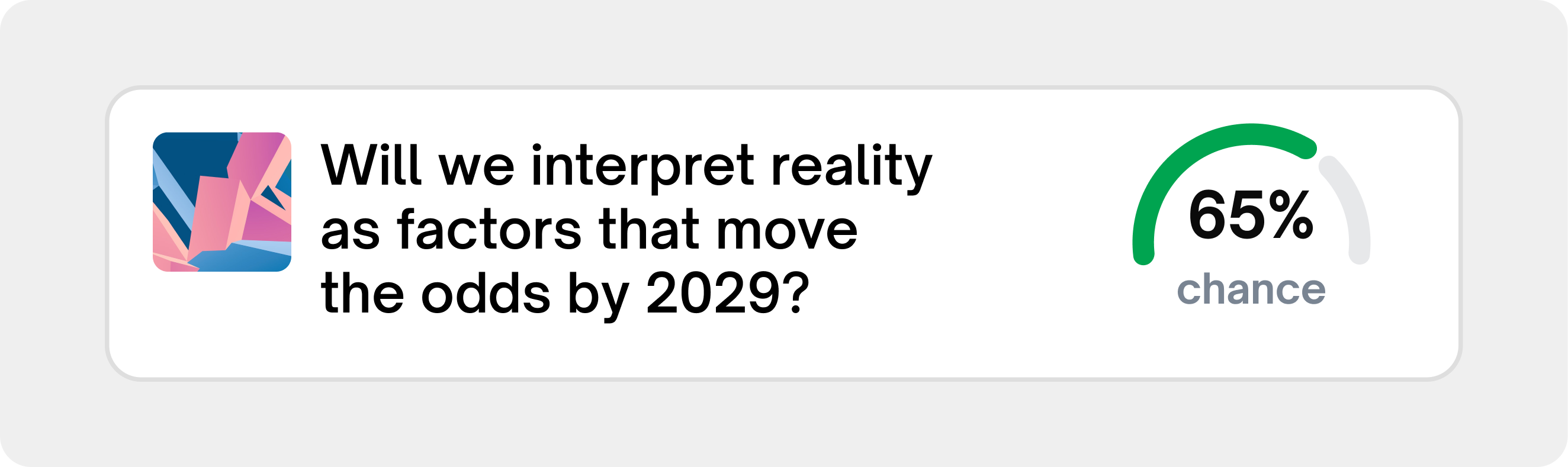 In the same way that in a conversation with friends, someone may refer to the number of Instagram followers a person has as an indication of their level of fame, in the near future, we will be using prediction market odds as a measure of how likely something is to happen. It will become social shorthand. So what could it look like?