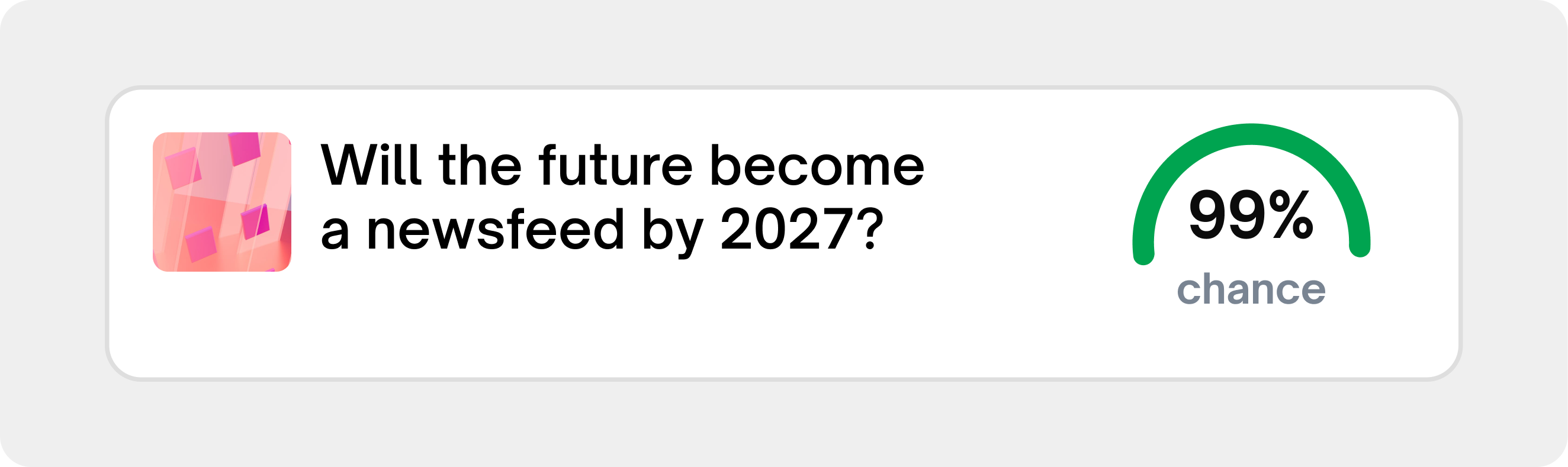 Real-time probability scores for an event occurring are the perfect measure of compressed meaning for our fast-moving news cycle. So prediction market odds will be embedded in our information infrastructure in the same way that stock tickers and weather forecasts are now—constantly visible and updating.