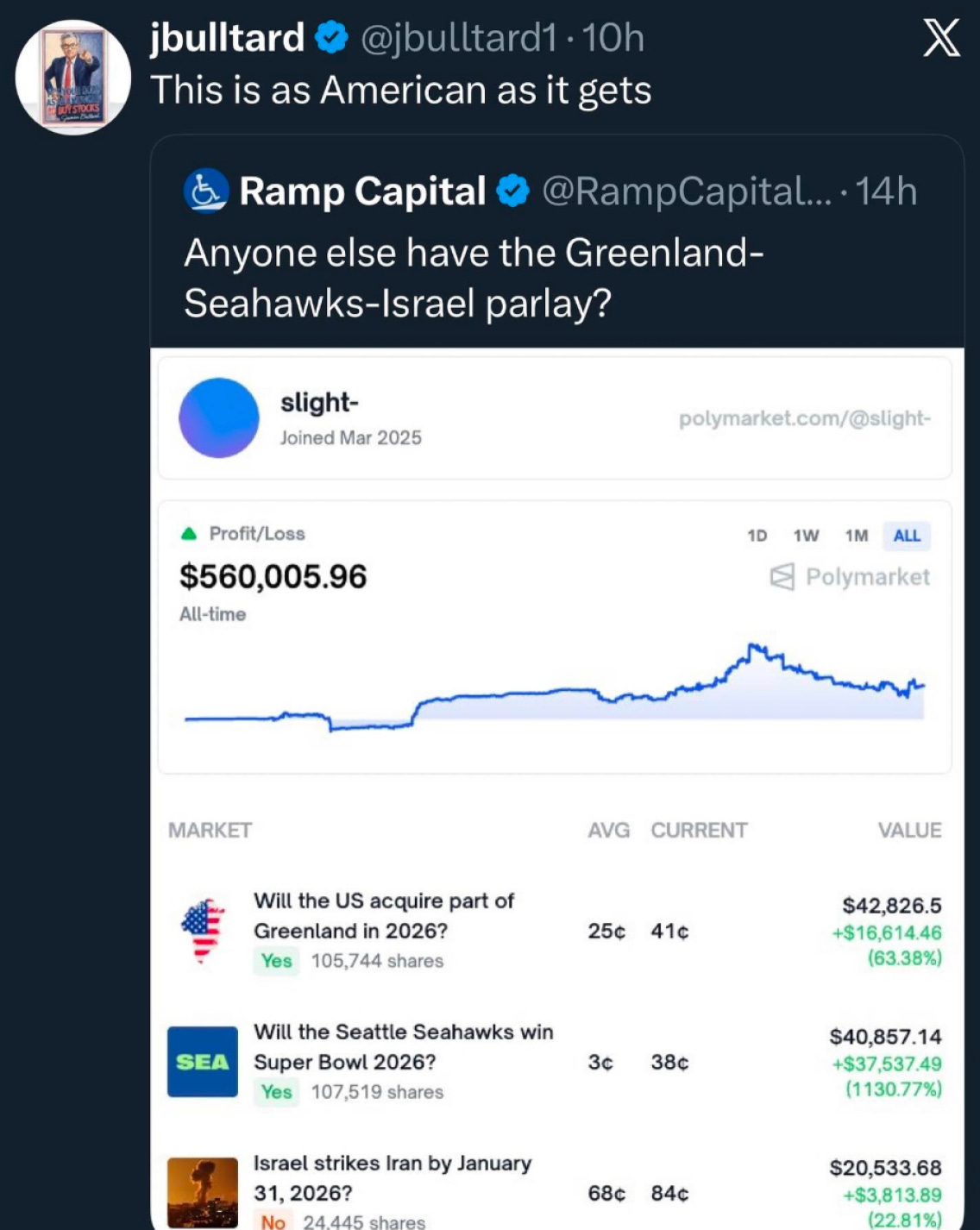But in an age of misinformation, AI slop, propaganda, and geopolitical posturing, there should be some comfort found in having a data signal that is democratic, crowd-sourced, and reliable. These odds can be manipulated through huge bets, but on a liquid market, that’s a costly psy-op.